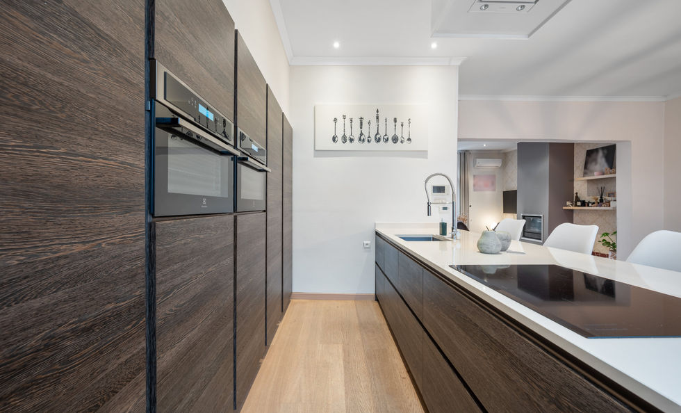 Op de tussenverdieping bevindt zich de eerste slaapkamer met een eigen badkamer. Hierboven bevindt zich de ruime woonkamer met open keuken. Hoge plafonds, een modern kookeiland, een gezellige zithoek en een open haard maken deze ruimte tot het hart van het huis. Via de zithoek komt men op een gezellig dakterras van 30 m², dat privacy en rust biedt. De tweede verdieping beschikt over een badkamer, toilet, diverse inbouwkasten en twee ruime slaapkamers, beide met inloopdressing.