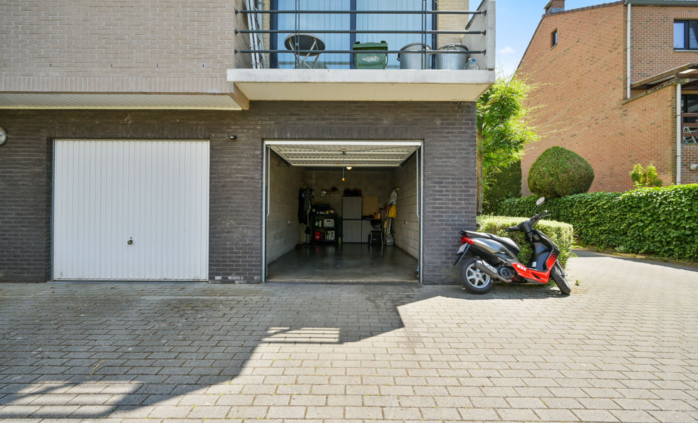 Achteraan het gebouw bevindt zich de privatieve garagebox die inbegrepen is in de prijs. Het appartement is onmiddellijk beschikbaar, een buitenkans voor snelle beslissers!